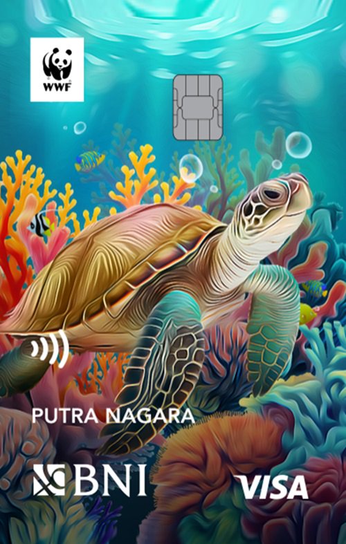 Bank Negara Indonesia bekerja sama dengan World Wide Fund for Nature Indonesia menerbitkan Kartu Kredit BNI-WWF varian Gold dan Platinum. WWF Indonesia adalah organisasi konservasi nasional yang memiliki misi utama melestarikan, merestorasi, dan mengelola ekosistem dan keanekaragaman hayati Indonesia secara berkeadilan demi keberlanjutan dan kesejahteraan seluruh rakyat Indonesia.