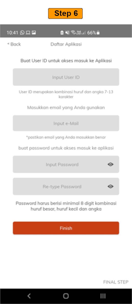 Pemegang kartu diminta membuat User ID dan Password BNI Credit Card Mobile, serta menginput E-mail aktif yang digunakan.