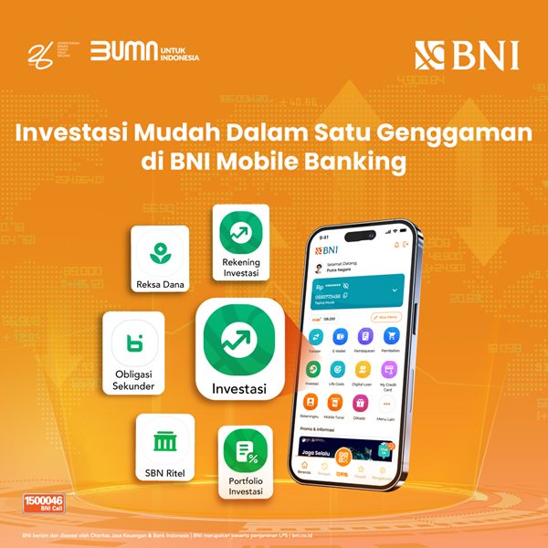 Jangan lewatkan momentum berinvestasi ditengah sentiment positif IHSG atas Pemilu 2024. Persiapkan perjalanan investasi Anda dari sekarang, dengan membuka rekening investasi hanya dalam 1 genggaman saja di BNI Mobile Banking. Konsultasikan pemilihan produk investasi yang sesuai dengan tujuan keuangan dan profil risiko Anda dengan Relationship Manager dan Investment Specialist BNI Emerald.