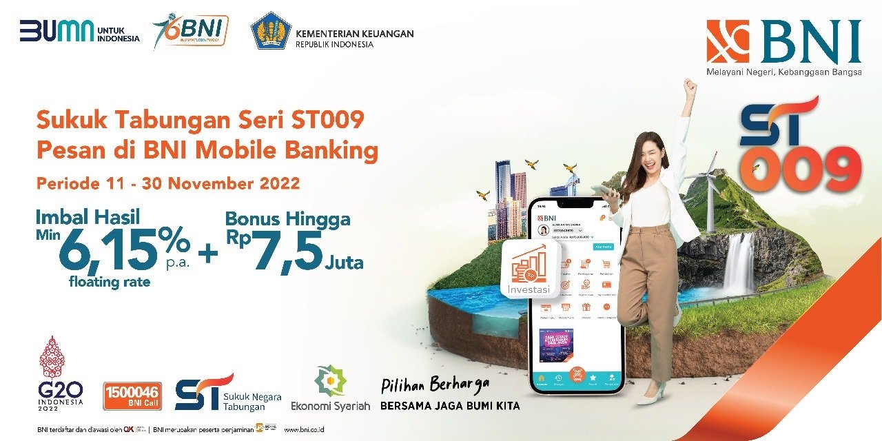 Pastikan Anda berinvestasi Sukuk Tabungan seri ST009 melalui BNI demi keamanan transaksi Anda, serta dapatkan special reward dari BNI.