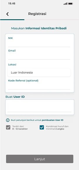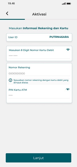 Siapkan beberapa dokumen informasi seperti : Nomor Rekening, Nomor Kartu Debit, PIN Kartu Debit, NIK dan E-mail lalu klik Lanjut.